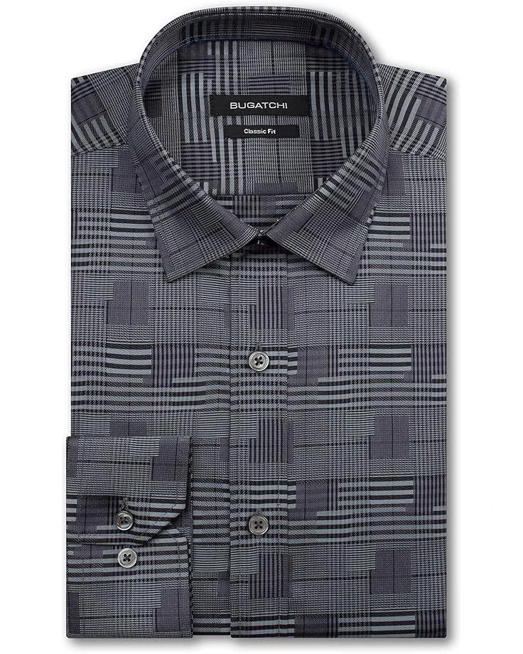 BUGATCHI Men’s Long Sleeve Point Collar Classic Woven