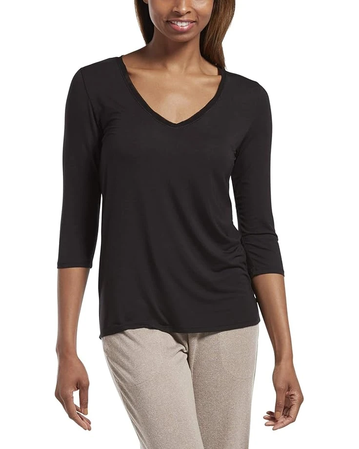 HUE Plus Size 3/4 Sleeve V-Neck Sleep Tee